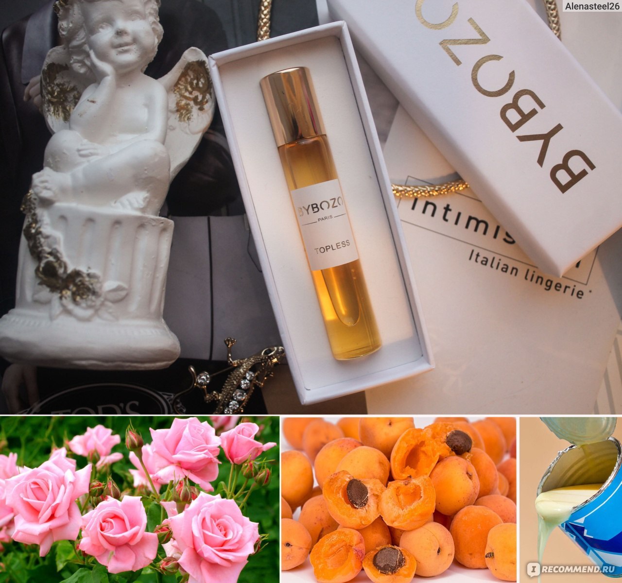 Первые ноты аромата волнуют воображение сладостной мелодией очаровательного жасмина, таинственного османтуса и королевской розы, которая не выпускает свои шипы, а нежно касается тела, словно тончайший шёлк. В сердце парфюма ByBozo «Topless» эстафету подхватывают гармоничные мотивы тёплого парного молока, изысканного нарцисса и экзотической туберозы, растворяясь в романтичном плену шлейфа из оттенков благородного белого.